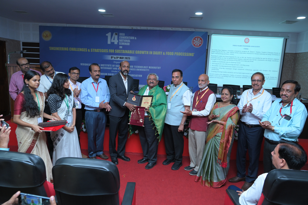 This prestigious recognition by the Indian Dairy Engineers Association (IDEA) celebrates his visionary leadership, decades of dedicated service, and exceptional contributions to the field of Dairy Engineering. The award was presented by Dr. Anil K.S., Vice Chancellor of Kerala Veterinary and Animal Sciences University, adding further distinction to this honour.
